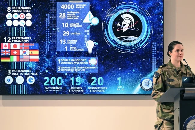 Au total, 200 personnes participent à cet exercice. Sont également associés les deux principaux organismes civils chargés du pilotage et de la recherche dans le domaine spatial en France : l’Office national d’études et de recherches aérospatiales (Onera) et le Centre national d’études spatiales (Cnes). Des militaires de douze pays, dont des Allemands et des Américains qui « fournissent des joueurs par solidarité stratégique », selon le colonel Fleury, sont aussi de la partie. Ainsi que les grands industriels du spatial et de la défense, MBDA, Safran Data System, Thales Alenia Space. « Nous mettons à disposition notre outil Helix », un service de surveillance spatiale de détection, de suivi et de caractérisation des objets spatiaux, explique Étienne Bosca, ingénieur surveillance de l’espace chez Ariane Group. « Ce qui nous permet d’être au plus prêt de notre client, le CDE. »