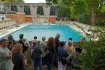 C’est Katcross, du nom de deux artistes toulousains, qui a électrisé durant 2 heures 30 la visite de la caserne Vion ce samedi. Ce lieu d’un hectare, construit entre 1966 et 1972 par l’architecte Pierre Debeaux, associé à Pierre Brunerie, est toujours resté fermé au public. Et pour cause, la caserne était entièrement dédiée aux pompiers. Exceptionnellement, le public a pu se glisser dans le garage et gymnase, admirer l’auditorium, se frayer un chemin jusqu’à la piscine et la fosse à plongée.