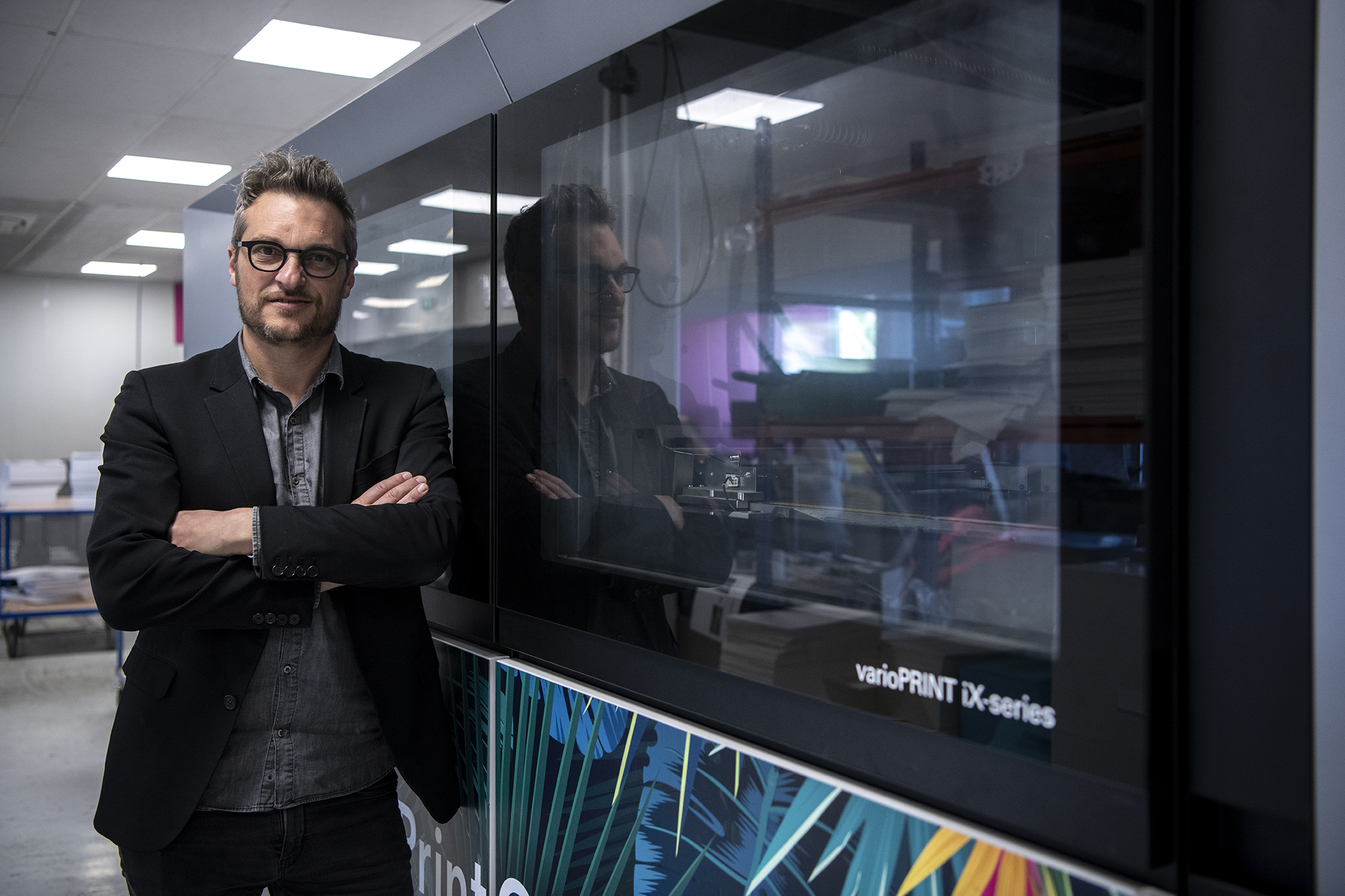 Sur les photos : L’atelier d’impression de PrintOclock situé dans la zone dite de Gros Larrieu. Crédit : PrintOclock. // Antoine Roux, le dirigeant du spécialiste toulousain de l’impression en ligne PrintOclock et sa machine Canon VPix. Crédit : Hélène Ressayres - ToulÉco.
