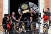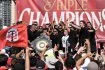 La canicule n’a pas arrêté les Toulousains qui sont venus en nombre célébrer l’arrivée du Bouclier de Brennus sur la place du Capitole, escorté par les joueurs du Stade Toulousain. Des sportifs qui, depuis le temps, connaissent le parcours jusqu’au célèbre balcon de la mairie d’où est brandi le précieux trophée aux côtés de l’édile de la ville, Jean-Luc Moudenc.