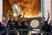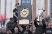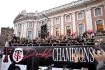 Le manager Ugo Mola, Champions Cup à la main, et le capitaine Antoine Dupont, Bouclier de Brennus à bout de bras, ont présenté les trophées au balcon de l’hôtel de ville de Toulouse. Un moment de fête et de célébration pour cette équipe et cette génération qui marque l’histoire du Stade Toulousain et du rugby français.