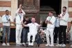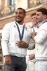 Tous ont été acclamés par une foule nombreuse venue les voir au balcon et sur un podium au centre de la place. Après une Marseillaise chantée par le baryton ancien rugbyman Omar Hasan depuis le balcon de la mairie, tous les athlètes ont pris un bain de foule, enchaînant les selfies.