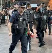 Elle a été dispersée immédiatement par les forces de l’ordre, en réponse à l’interdiction de tout rassemblement en soutien à La Palestine annoncée par le ministre de l’Intérieur Gérald Darmanin en fin d’après-midi. Sur la photo, un gendarme mobile s’empare d’un drapeau palestinien brandi par un manifestant.